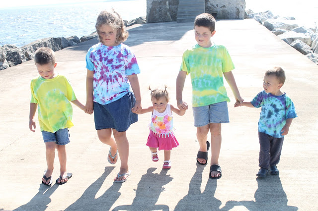 Using tie-dye we created some colorful cousin apparel and then headed out to take pictures of the whole crew. I just love how the tie-dye gives the group a uniform look–but not too uniform.