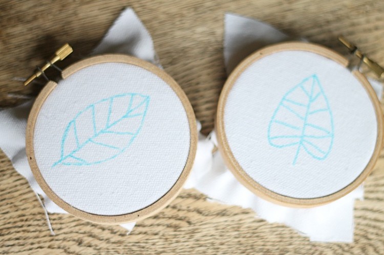 embroidered fall leaves drawn